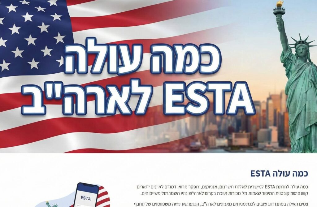 נכון לשנת 2026, עלות אגרת ESTA הממשלתית הרשמית התעדכנה ועומדת על $40.27 (כ-145 ש"ח). דרך אתר USA Visa Esta Center, עלות השירות הכוללת בדיקת תקינות, תרגום לעברית ותמיכה מלאה היא 245 ש"ח (דמי שירות) + עלות האגרה הממשלתית. הסכום הכולל המשוער הוא כ-390 ש"ח.